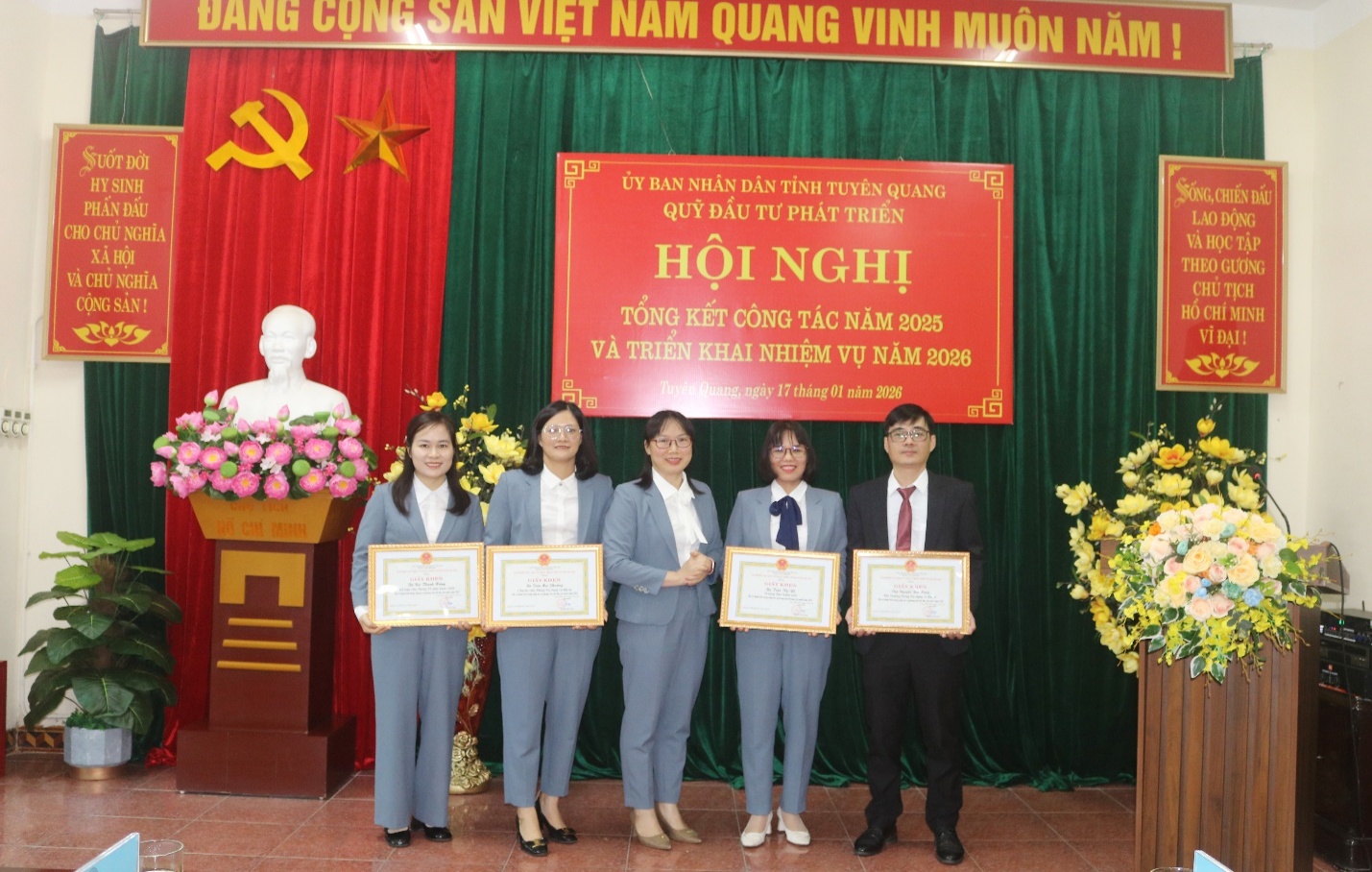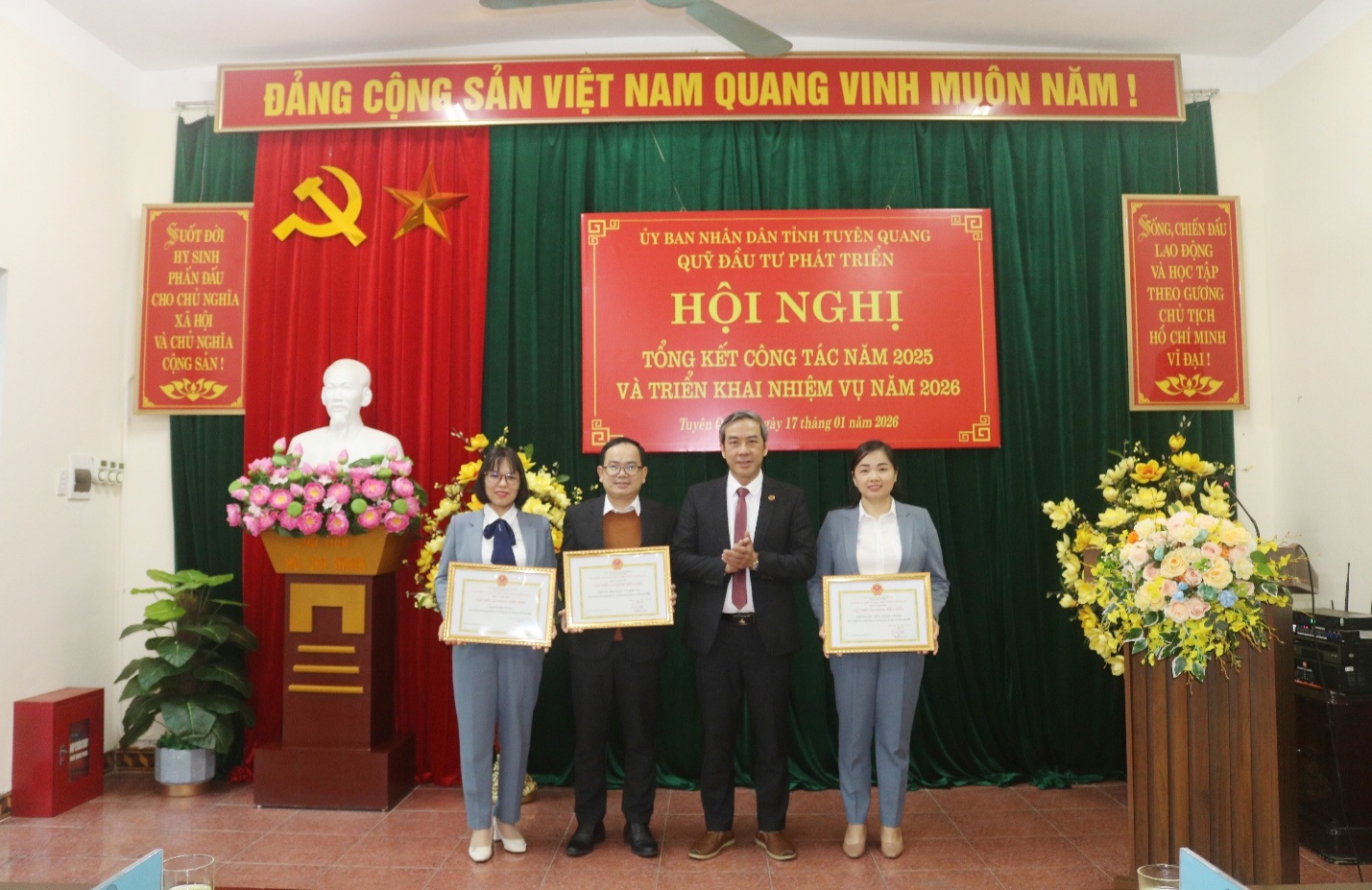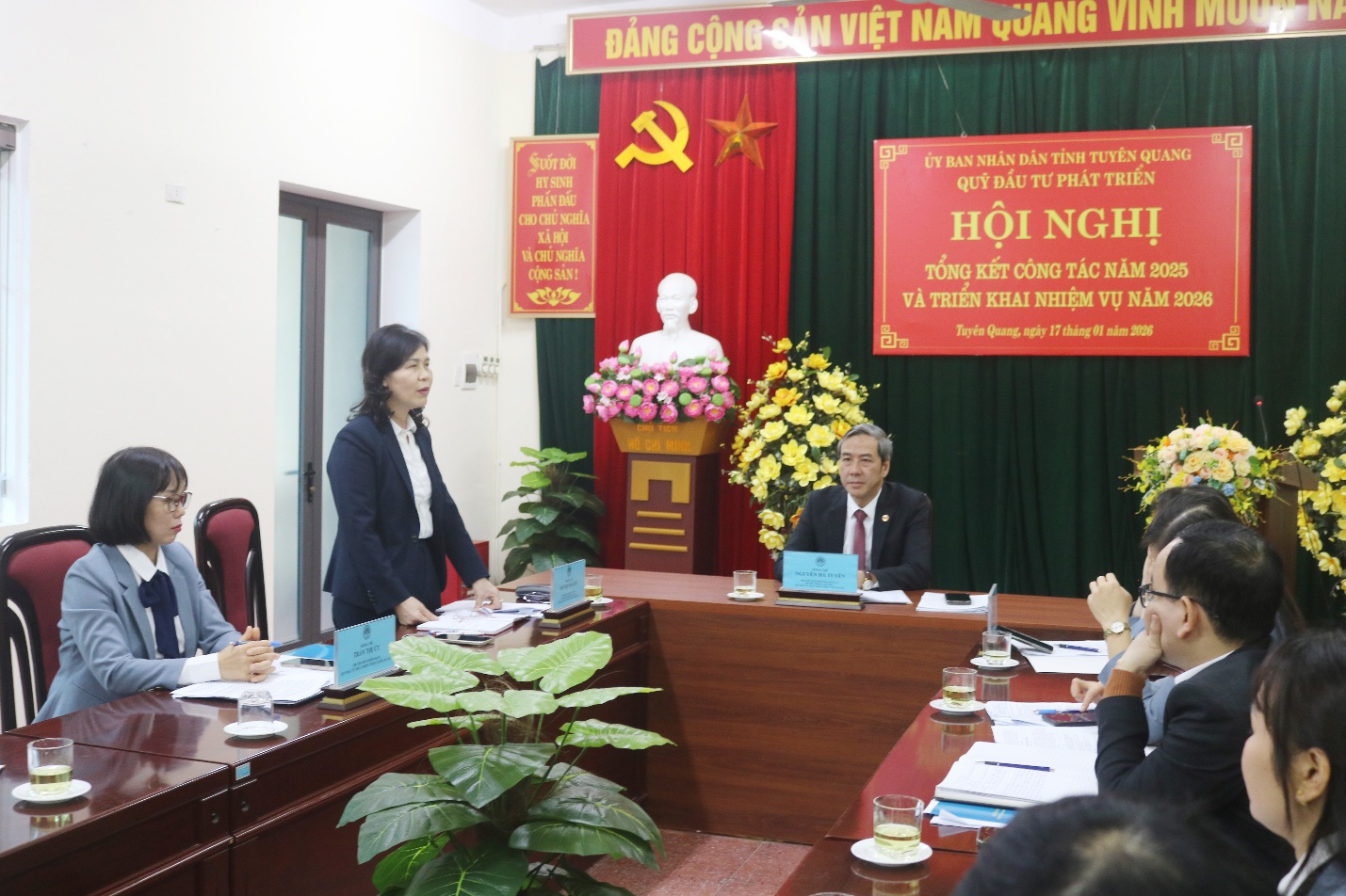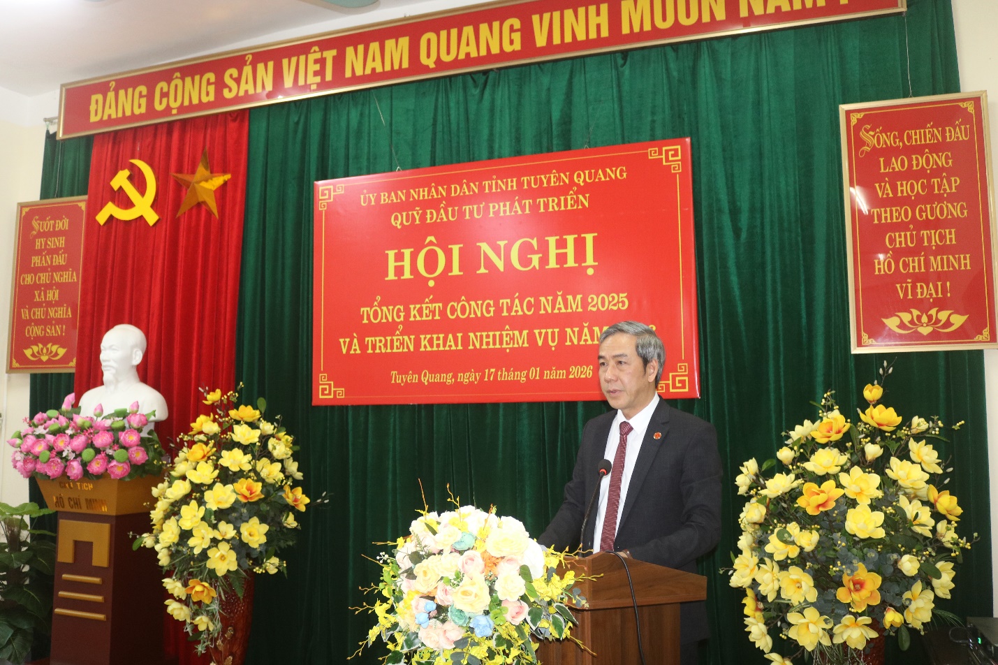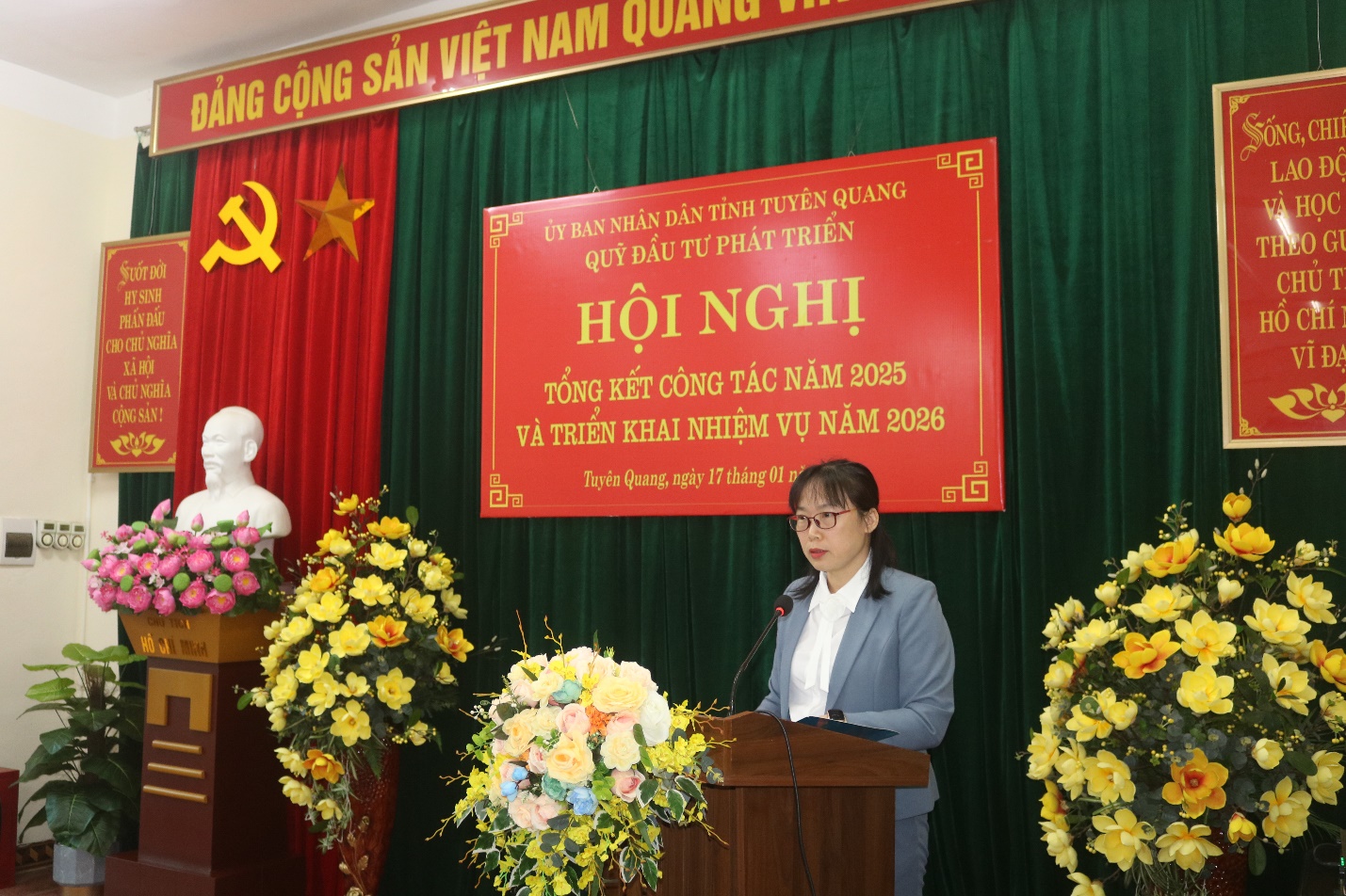 Sáng ngày 17/01/2026, Quỹ Đầu tư phát triển tỉnh Tuyên Quang tổ chức Hội nghị tổng kết công tác năm 2025 và triển khai nhiệm vụ năm 2026. Chủ trì Hội nghị có đồng chí Nguyễn Hà Tuyên, Phó Chủ tịch Hội đồng quản lý - Bí thư Chi bộ, Giám đốc Quỹ Đầu tư phát triển phát triển tỉnh Tuyên Quang